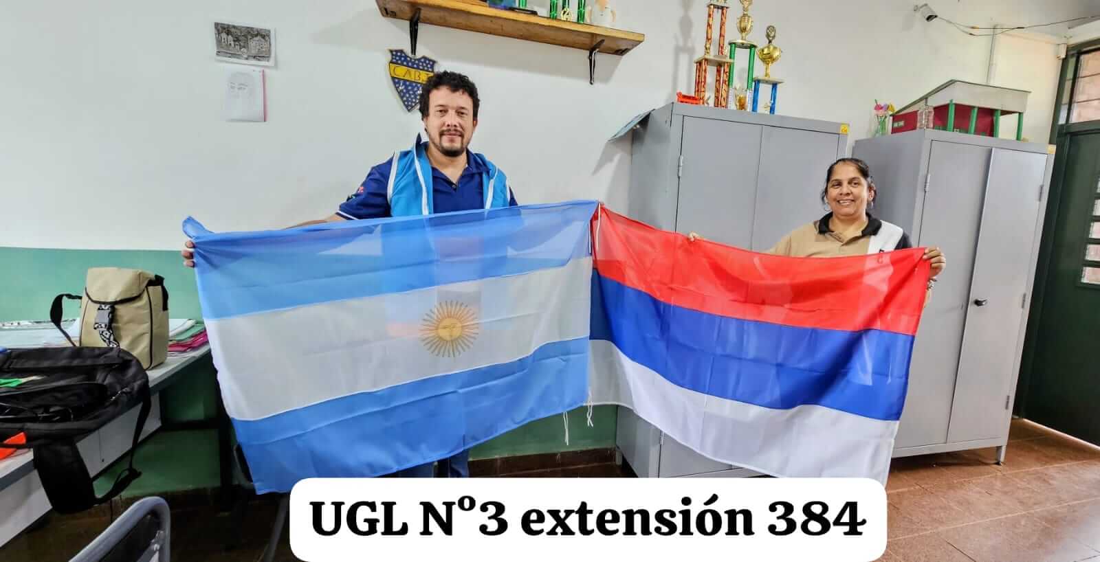 Delegados Departamentales por San Pedro hicieron entrega de banderas de mástil gestionada por los delegados escolares de las siguientes instituciones: C.E.P. Nº 40 de Pozo Azul y U.G.L. Nº 3 extensión 384 de la Colonia San Lorenzo.