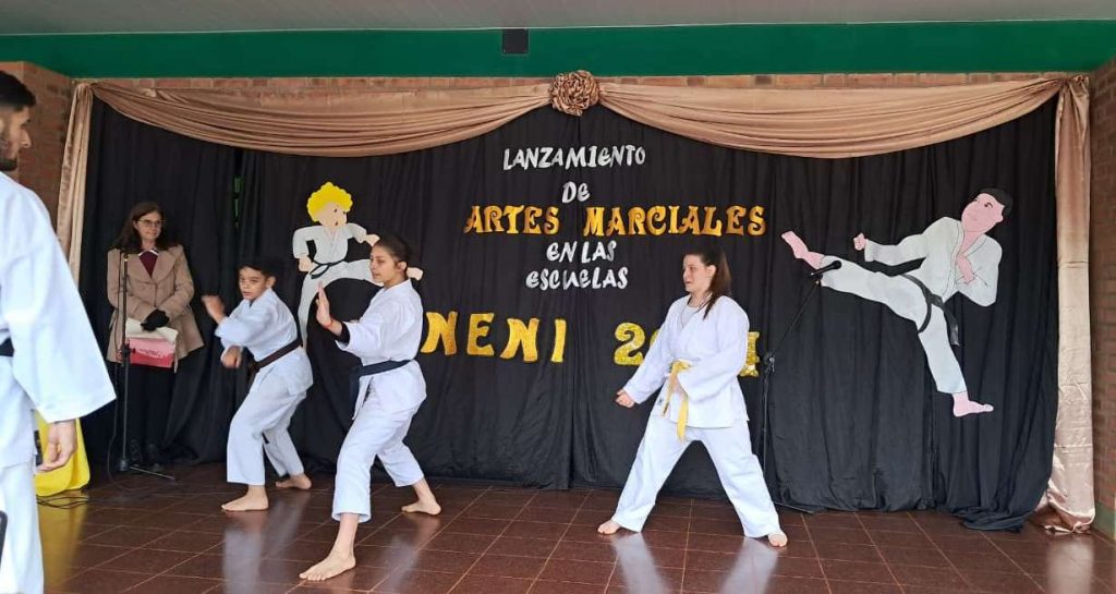 Participamos esta mañana, del acto lanzamiento de la Implementación de Artes Marciales y Deportes de Combate, en las Instituciones Educativas de la Provincia; con lo cual se da un significativo paso hacia la incorporación de nuevas propuestas pedagógicas que promueven la educación integral, el respeto y la convivencia.